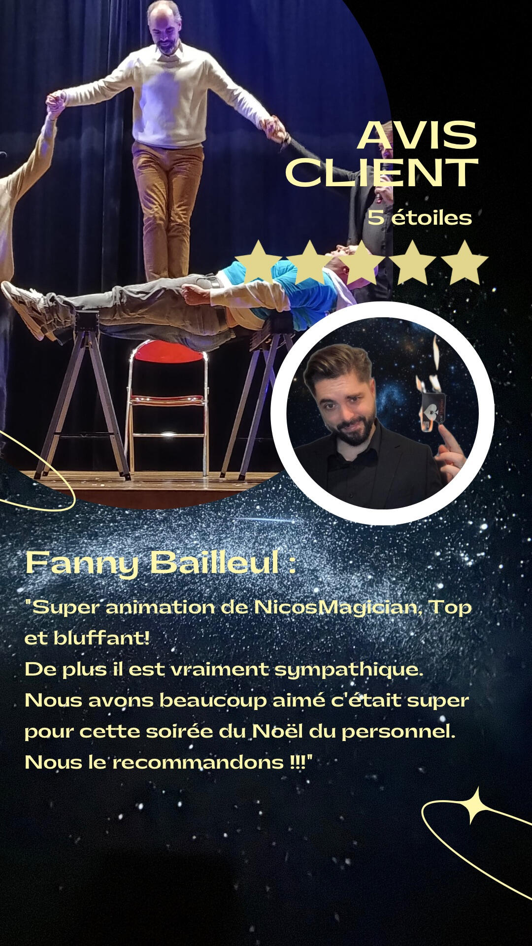 Salut à toi, je m'appelle Nicolas, je suis magicien, mentaliste et hypnotiseur.Viens découvrir un monde magique en faisant appel à mes services.